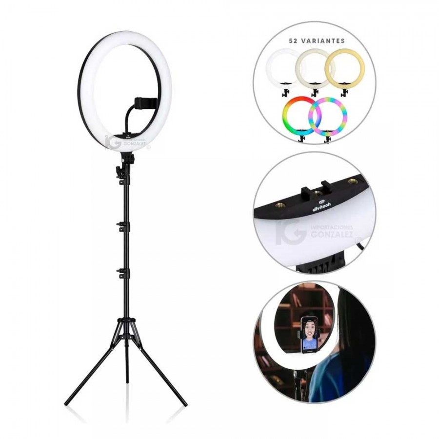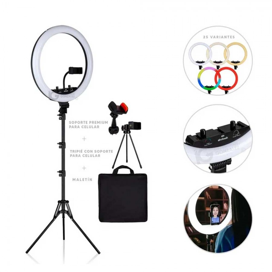 Aro De Luz Led Divitech Profesional De 18" Rgb Con Maletin Tripie